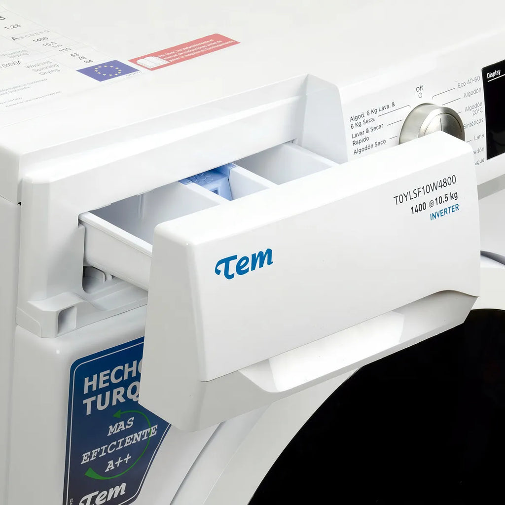 Lavasecarropas TEM T0YLSF10W4800 10.5K – Eficiente, moderno y diseñado para brindar lavado y secado completos en un solo equipo.