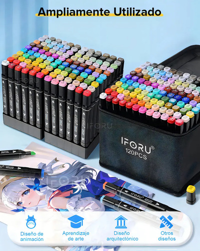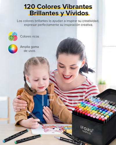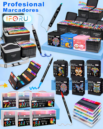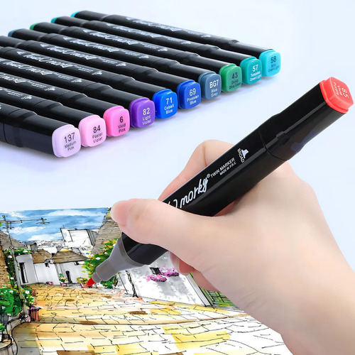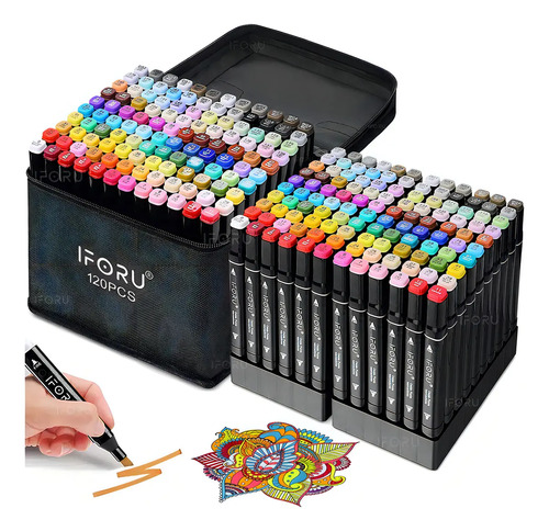 Este conjunto incluye 120 marcadores de doble punta, ideales para una amplia gama de aplicaciones artísticas y de diseño. Cada marcador ofrece dos tipos de puntas: una fina para detalles precisos y una más gruesa para cobertura amplia. Los marcadores vienen en una variedad de colores vibrantes, proporcionando una excelente saturación y cobertura en tus ilustraciones, bocetos y proyectos. El estuche incluido facilita la organización y el transporte de los marcadores, manteniéndolos seguros y accesibles en todo momento.