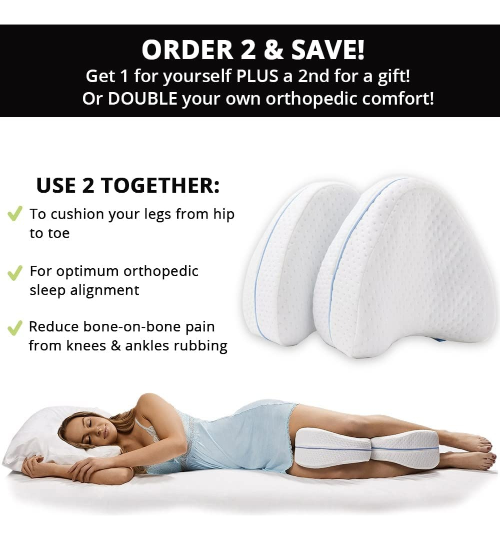 La única almohada para piernas que soporta tanto tus piernas como rodillas: cuando inventamos nuestra almohada para piernas por primera vez a principios de los 90 (la forma de cristal de la hora que tantas empresas han copiado), nuestro objetivo era mejorar la alineación del sueño para reducir el dolor. La almohada para piernas fue inventada para ayudar a reducir la presión que ocurre por una mala postura al dormir, la cual causa molestias. Años más tarde nos dimos cuenta de que la amortiguación y el apoyo tanto a tus piernas como rodillas son importantes para mantener la alineación adecuada para ayudar a reducir el dolor.