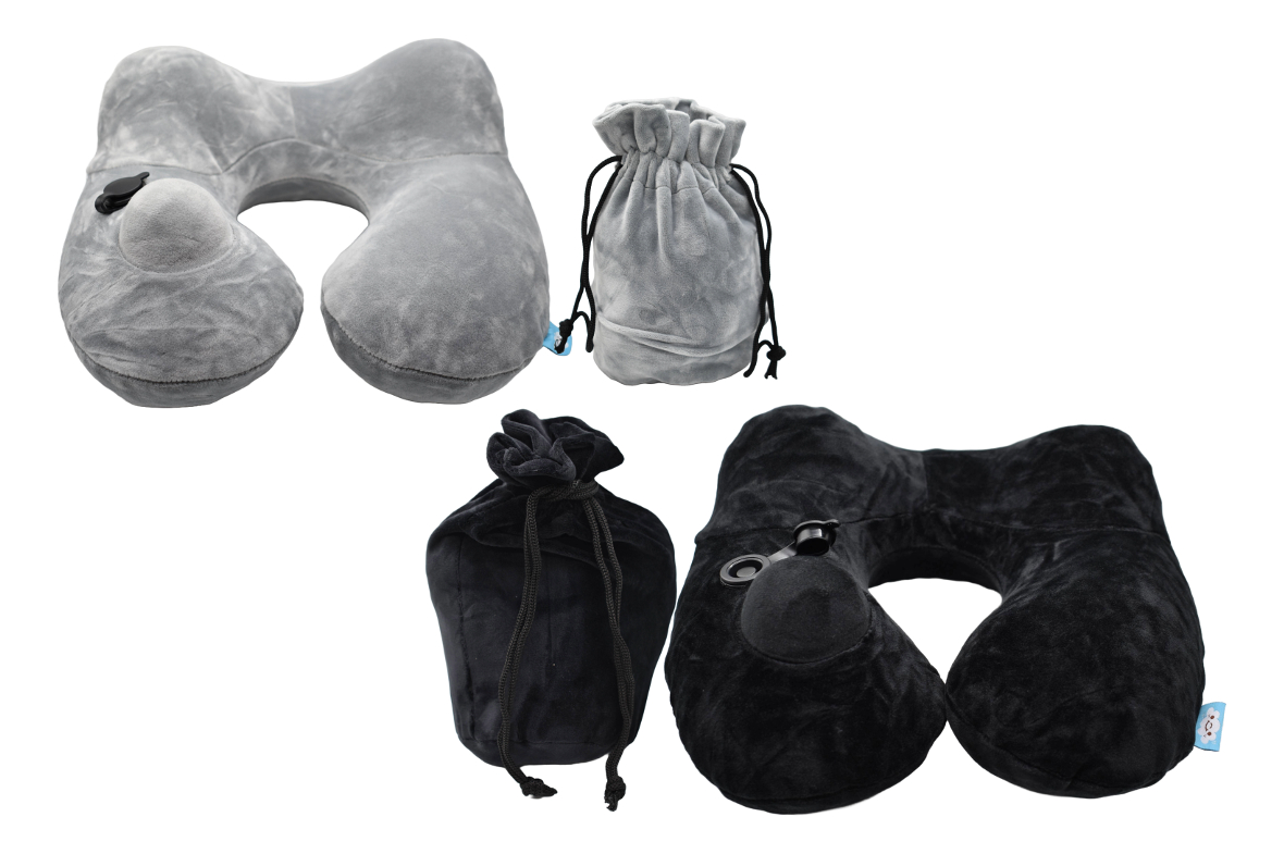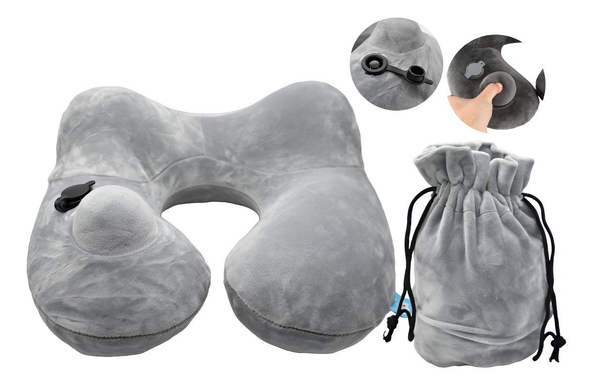 Almohada de viaje inflable en funda.