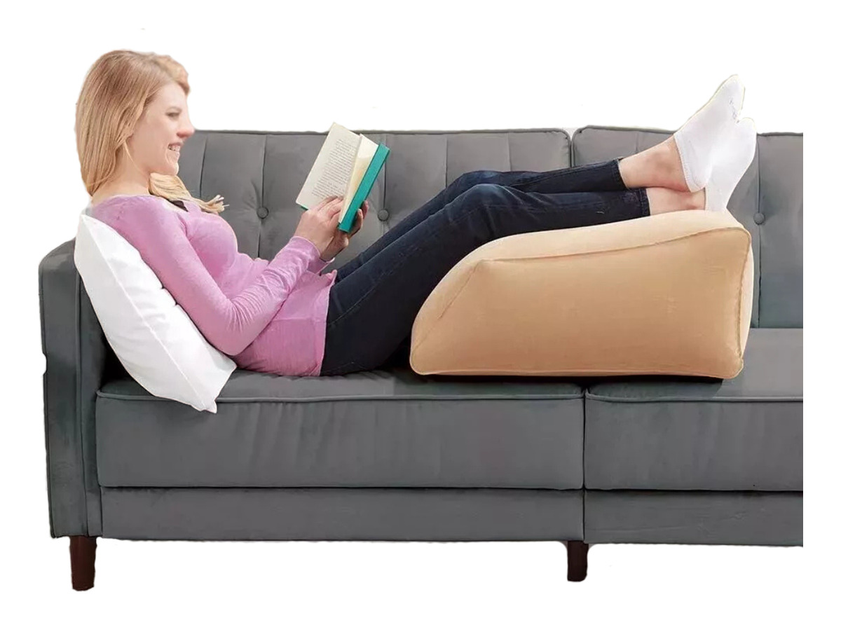 INFLABLE: La almohada en cuña para elevar las piernas es inflable. Se infla cuando la necesitas y se desinfla completamente cuando terminas de usarla. A diferencia de las almohadas de cuña de espuma, podrás guardarla fácilmente.