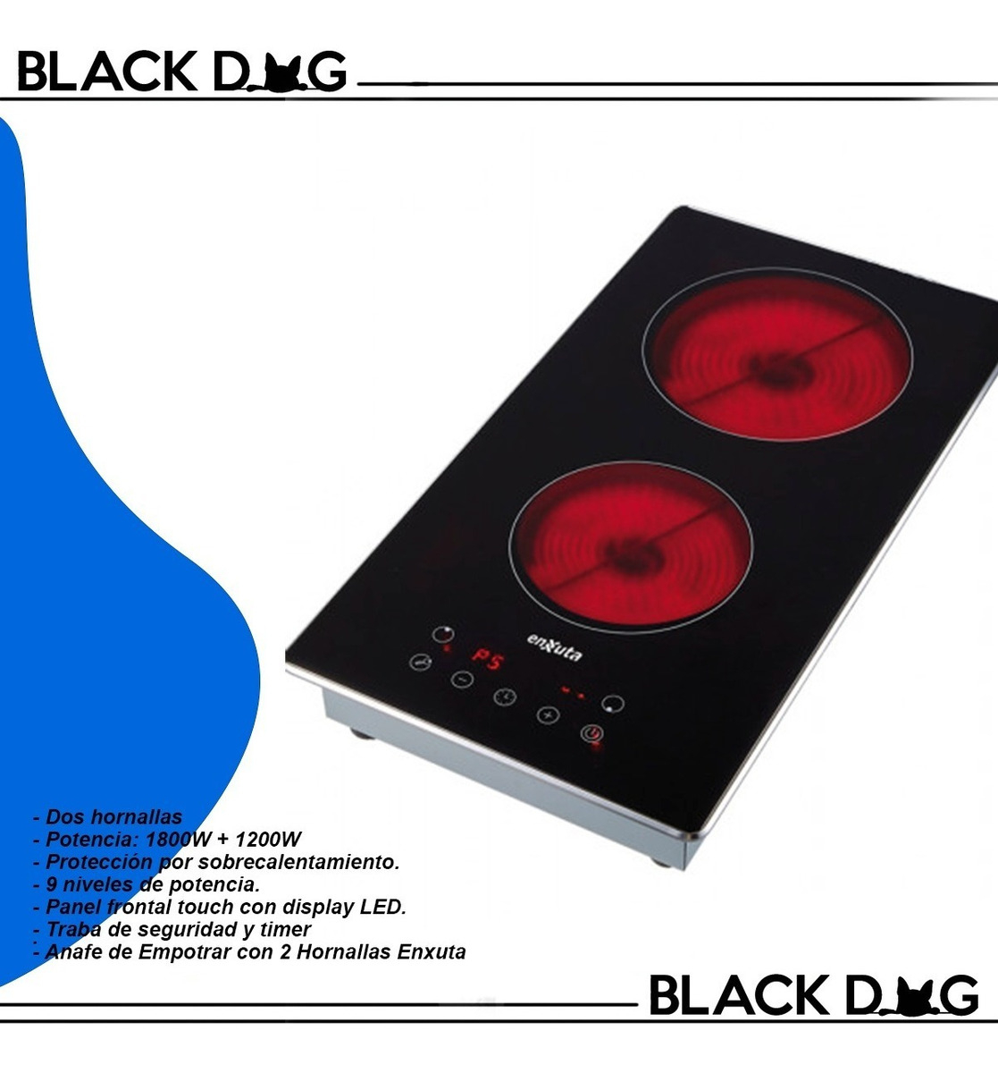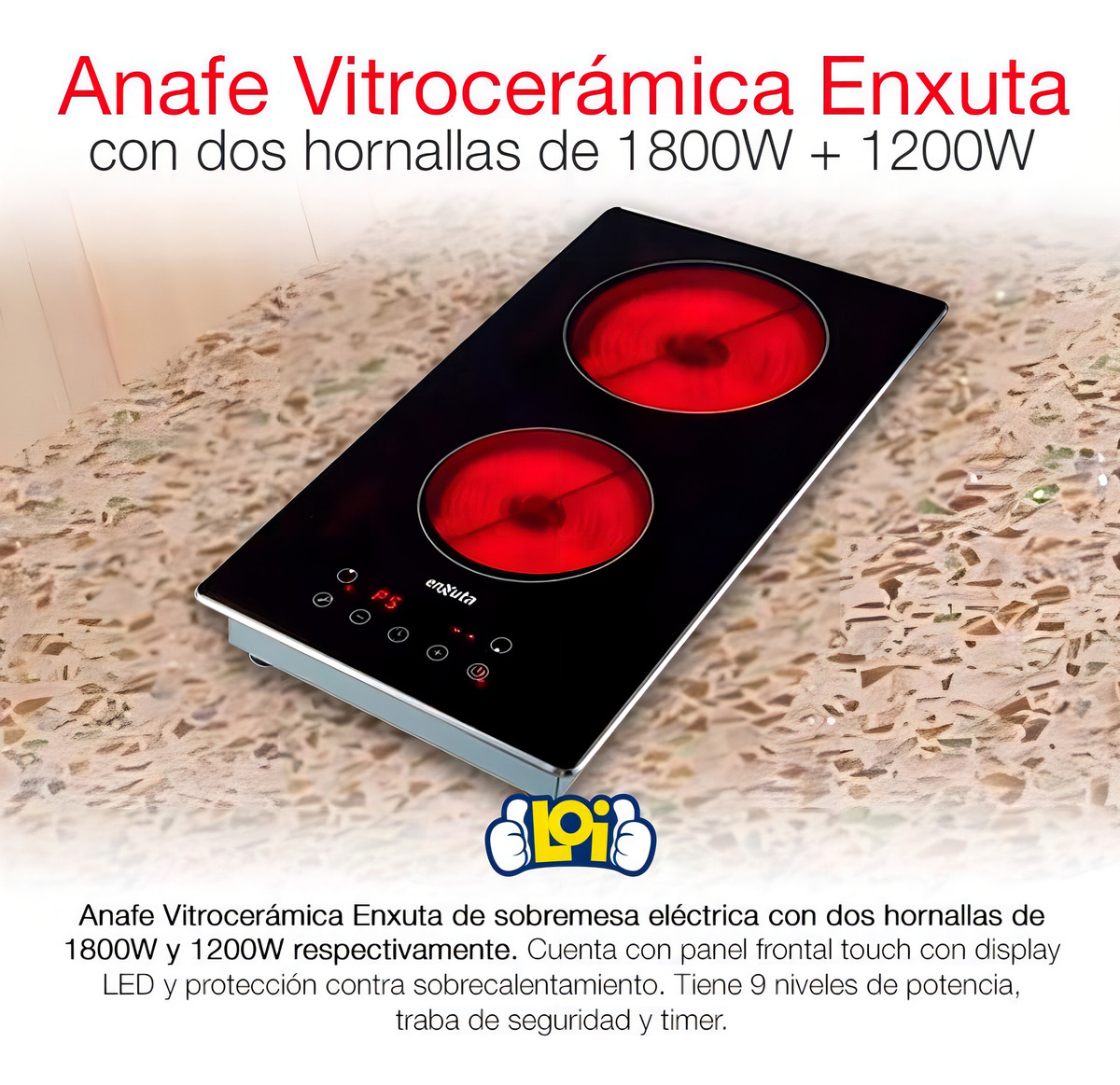 Anafe Vitrocerámica Enxuta Touch 2 Hornallas Negro Empotrable