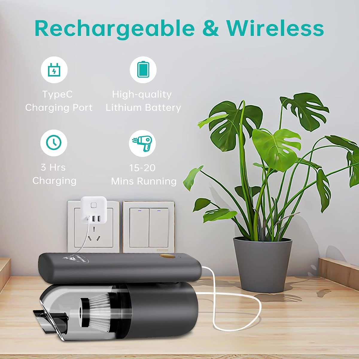 Batería de litio fiable y carga rápida: equipada con baterías de iones de litio de alta capacidad de alto rendimiento y 4000 mAh, nuestra aspiradora recargable puede funcionar continuamente hasta 20 minutos después de estar completamente cargada. Con tecnología de carga rápida, solo tarda aproximadamente 3 horas en cargarse. Diseñado con un puerto de carga USB, es fácil de cargar en casa, coche u oficina.