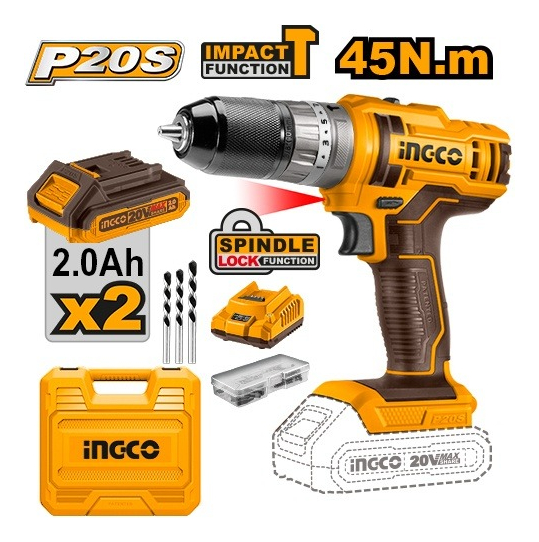 Atornillador 20v Percutor Mandril Metal Valija Ingco Cidli20 Naranja 50/60hz