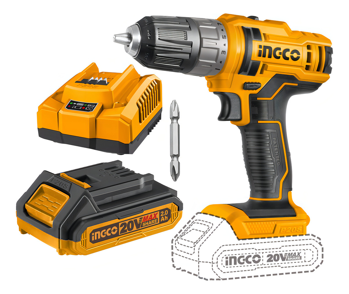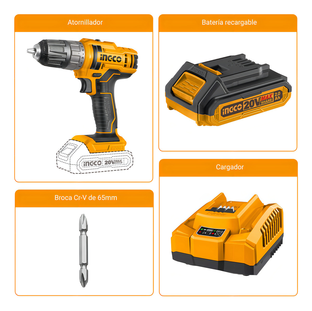 Atornillador A Bateria 20v P20s Bateria Y Cargador Ingco Color Amarillo