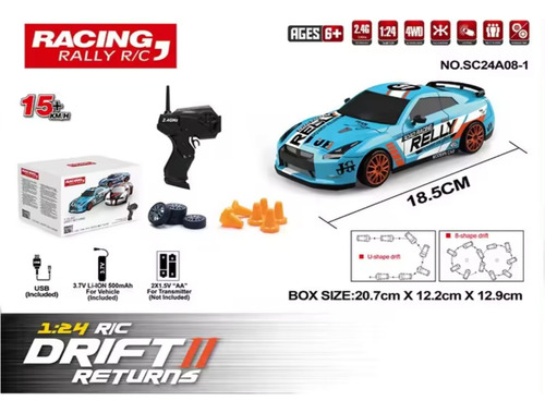 Coche de carreras a escala 24, el coche de deriva con control remoto puede ir hacia adelante, hacia atrás, girar a la izquierda y a la derecha, otras funciones de control síncrono a gran escala. El control remoto es muy fácil de simple operación. La carcasa dura de potencia no se daña fácilmente por el impacto durante la conducción. La velocidad puede alcanzar hasta 9.3 mi/h, lo que te proporciona una experiencia de carreras de alta velocidad más rápida. La parte delantera del automóvil tiene luces frías, y la conducción nocturna es más atractiva.