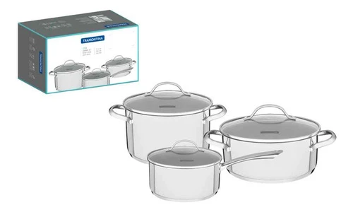 Bateria de Cocina Tramontina UNA 3 Piezas con Tapa de Vidrio