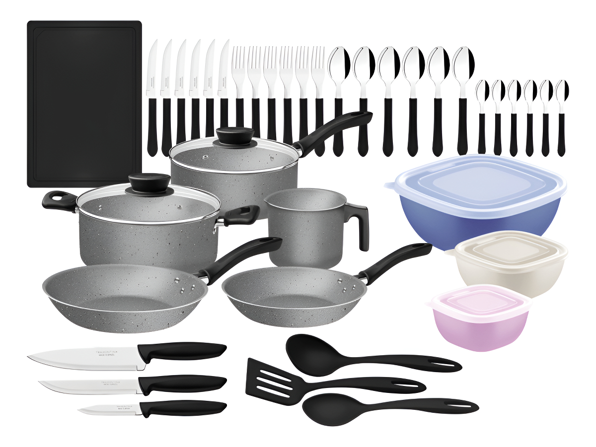 / Batería De Cocina Tramontina 28399602 Con 44 Piezas De Aluminio Plomo Gris