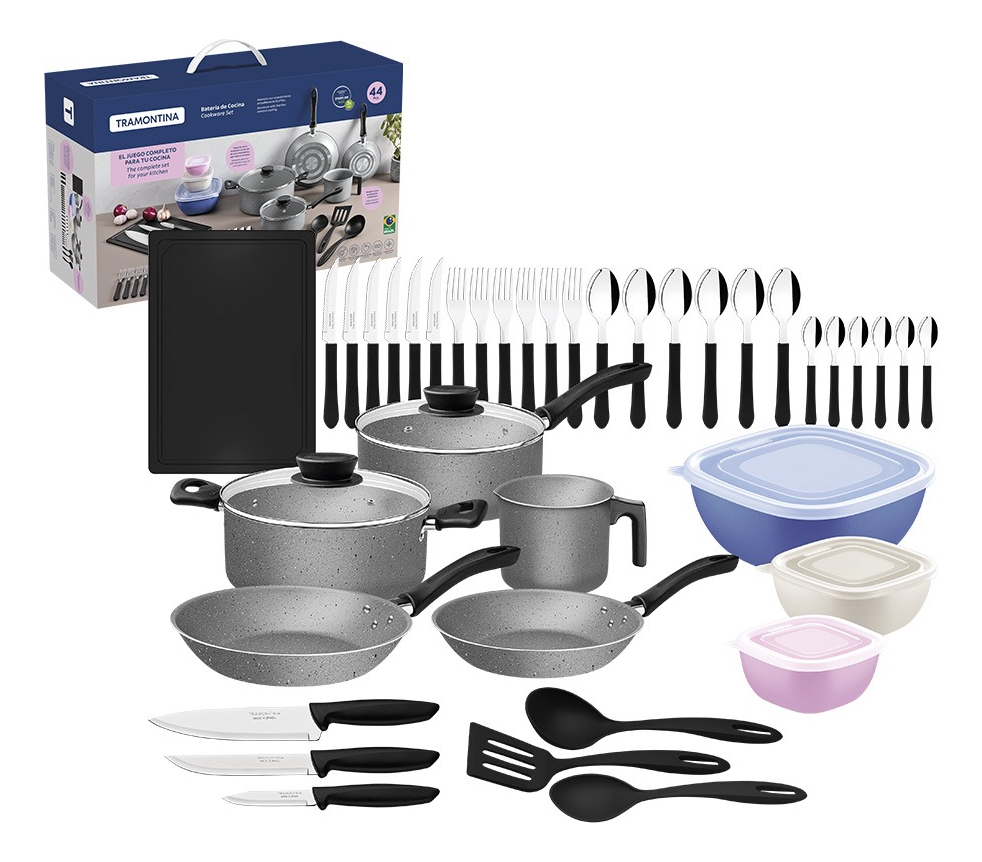 / Batería De Cocina Tramontina 28399602 Con 44 Piezas De Aluminio Plomo Gris