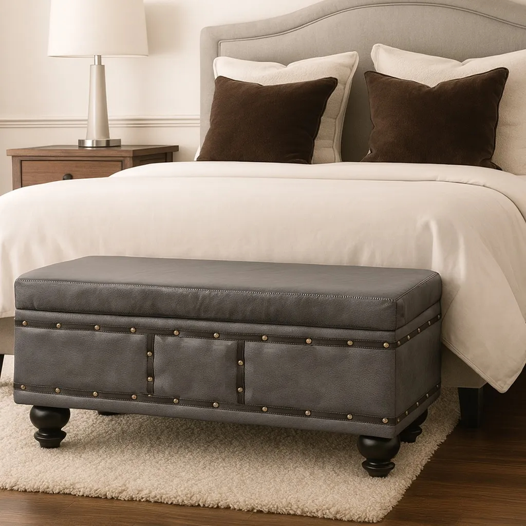 Baul de Madera MDF Banco Organizador Nhome ARTHUR-119 – Estilo clasico, funcionalidad y sostenibilidad para optimizar el espacio en el hogar.