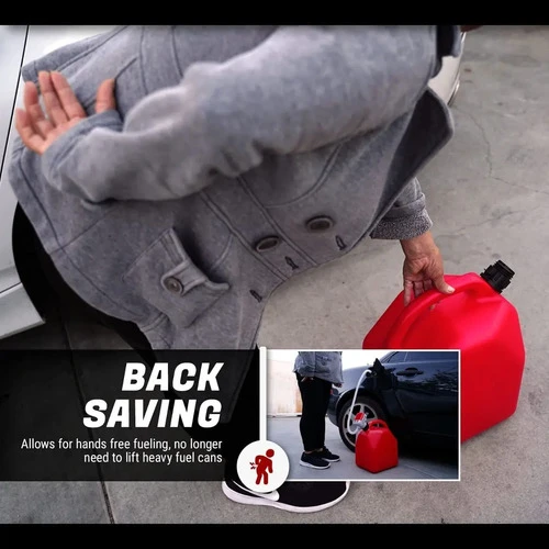 Funciona muy bien con calentadores de queroseno. Accesorio de clip integrado para reabastecimiento de combustible con manos libres. Hace que los generadores de reabastecimiento de combustible, equipos de césped, equipos de granja sean sencillos, levantar latas de gas pesado para repostar tu equipo será cosa del pasado.