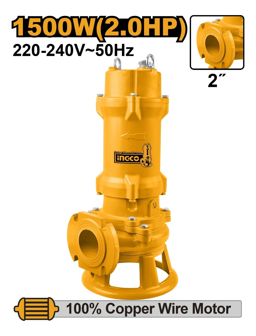 Con una potencia nominal de 1500W o 2.0HP, esta bomba es una solución robusta para gestionar aguas residuales y lidiar con pozos negros.
