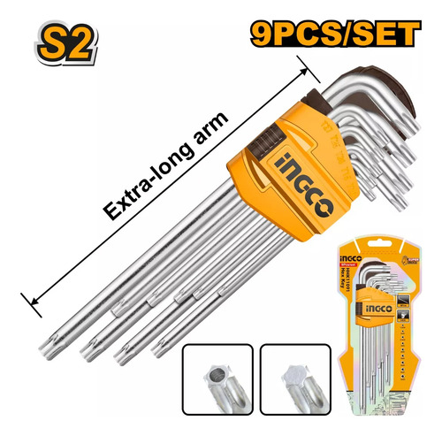 – Juego de 9 llaves Torx HHK13092 S2 extra largas – T10-T50, tratamiento térmico y cromado.