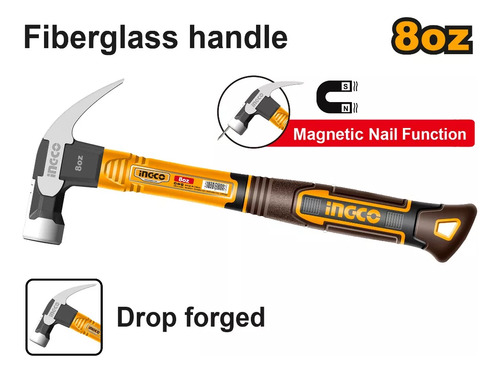 – Martillo de uña 220g HCH81008 – Función magnética, cabeza forjada, tratamiento térmico, mango de fibra.