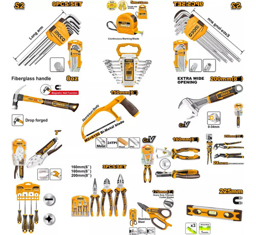 – Set de 3 pinzas HKPS08318 – Combinada 8”, punta fina 6”, corte diagonal 6”, aceite de pulido antioxidante.