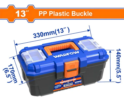 La Caja De Herramientas Wadfow WTB1313 es una opción ideal para profesionales y aficionados al bricolaje. Confeccionada en plástico PP de alta resistencia, esta caja de herramientas de 13″ X6.5″ X 5.5″ es duradera y resistente al desgaste. Su hebilla de plástico PP asegura un cierre seguro, protegiendo tus herramientas de cualquier daño. Con una capacidad máxima de 7kg, puedes almacenar una variedad de herramientas de diferentes tamaños y formas.