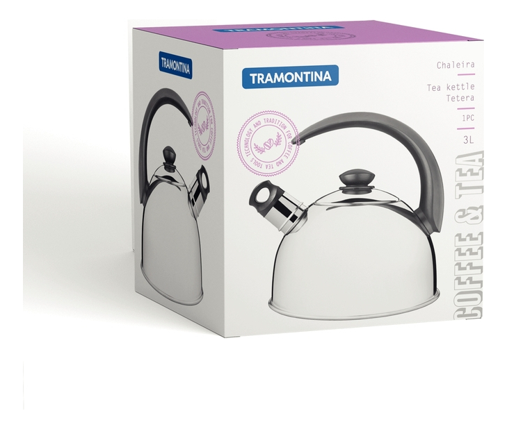 Utilice productos de calidad en su cocina para llevar a cabo sus tareas con más facilidad y calidad, la tetera con silbato de acero inoxidable Cabo Preto de 3 L de Tramontina es la elección correcta para hervir agua de manera eficiente y sencilla. Además de estar hecho completamente de acero inoxidable, un material muy duradero, este artículo también tiene un acabado brillante que hace que el producto sea aún más hermoso. Lo mejor de todo es que esta tetera tiene un silbato para avisarte cuando el agua está hirviendo dentro del recipiente y se puede utilizar en varios tipos de estufas.