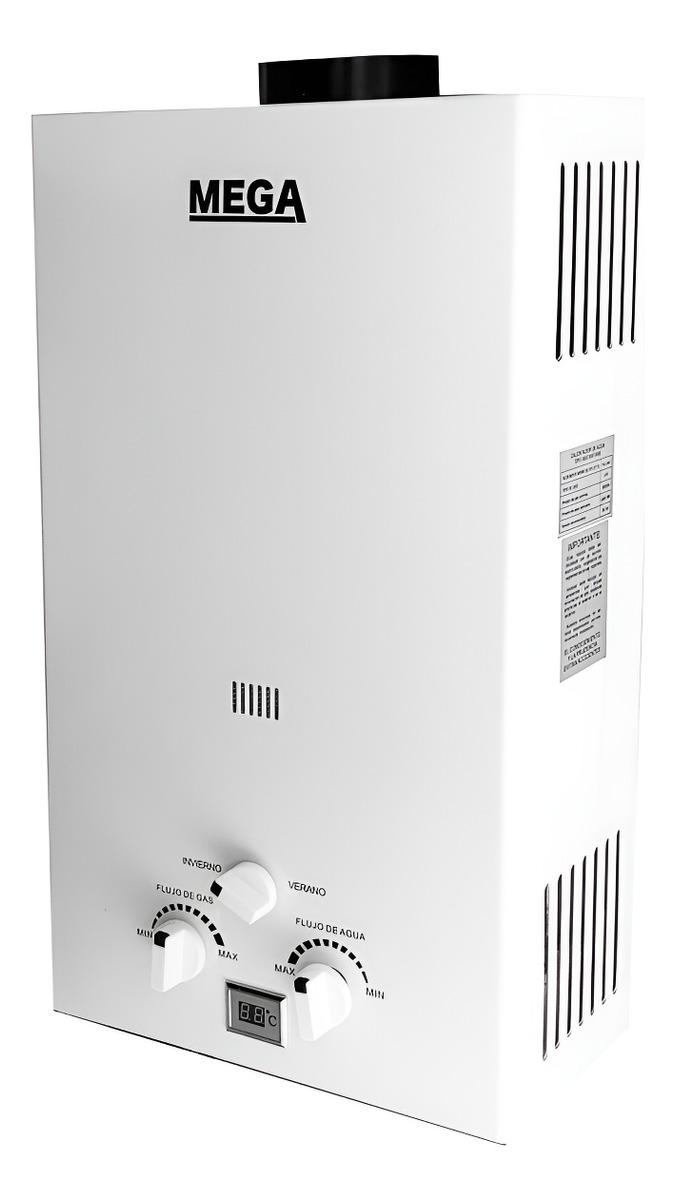 Calentador Instantaneo MEGA 12 Lts Tiro Natural – Eficiente, seguro y diseñado para brindar agua caliente al instante en cocina y baño.