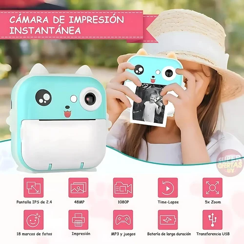 Camara infantil con impresion instantanea – Toma fotos, graba video en 1080P y permite imprimir al instante, ideal para niños