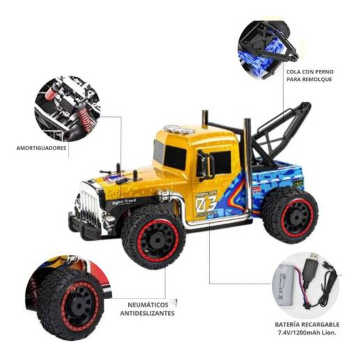 Neumáticos antideslizantes y resistentes al desgaste. Absorción de impactos con con suspensión independiente. Los componentes electrónicos impermeables Splash hacen que este camión sea un vehículo todo terreno. No te preocupes por hacer funcionar estos autos a control remoto en barro, arena y terrenos con baches.