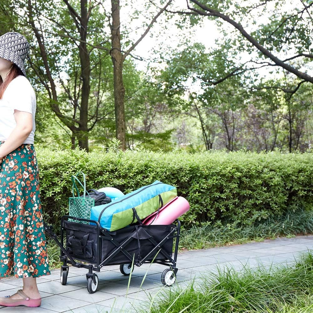 Carrito utilitario: el mango facilita el remolque, ruedas de gran tamaño de 5 pulgadas. Ideal para eventos deportivos, conciertos, ir al parque, playa o simplemente alrededor de la casa