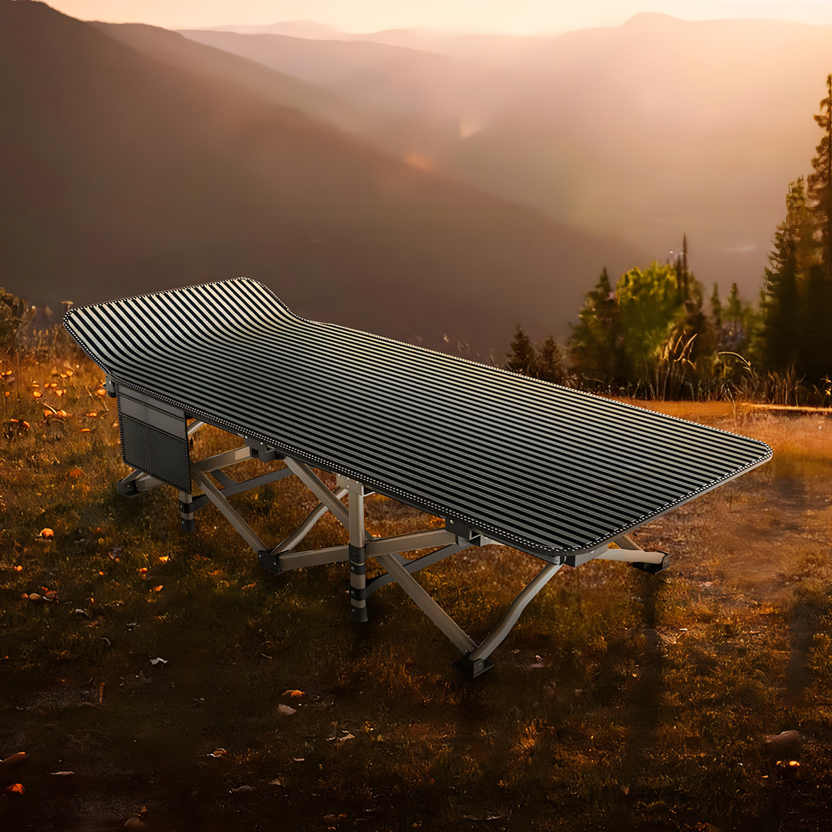 Catre Cama Plegable Metálico Con Bolso P/ Camping Color Negro
