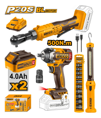 Combo Llave De Impacto 500nm 20v A Bateria + Llave Crique