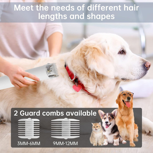 -Cabezales Intercambiables: Este versátil dispositivo incluye una cortadora de pelo con diferentes peines de diferentes longitudes, así como aspiradora común, aspiradora con cepillo, cepillos de deslanado, cardas y rastrillo. ¡Todo lo que necesitas para el cuidado completo de tu mascota en un solo kit!