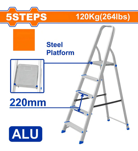 Escalera Familiar Aluminio 5 Escalones 120kg Wadfow Wld3h05 Color Plateado