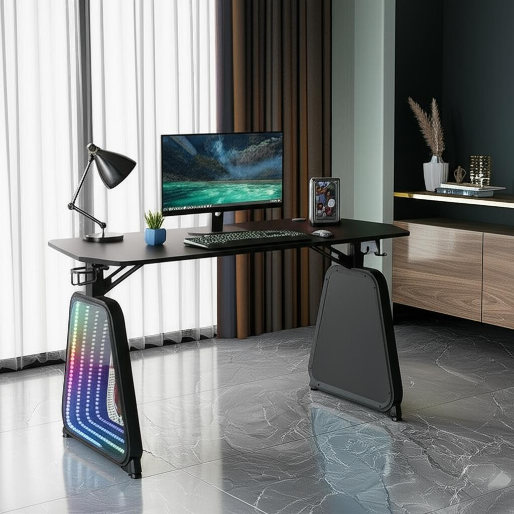 Escritorio Gamer 120cm Luces Rgb Con Espejos Gmd12-1 Dimm Color Negro