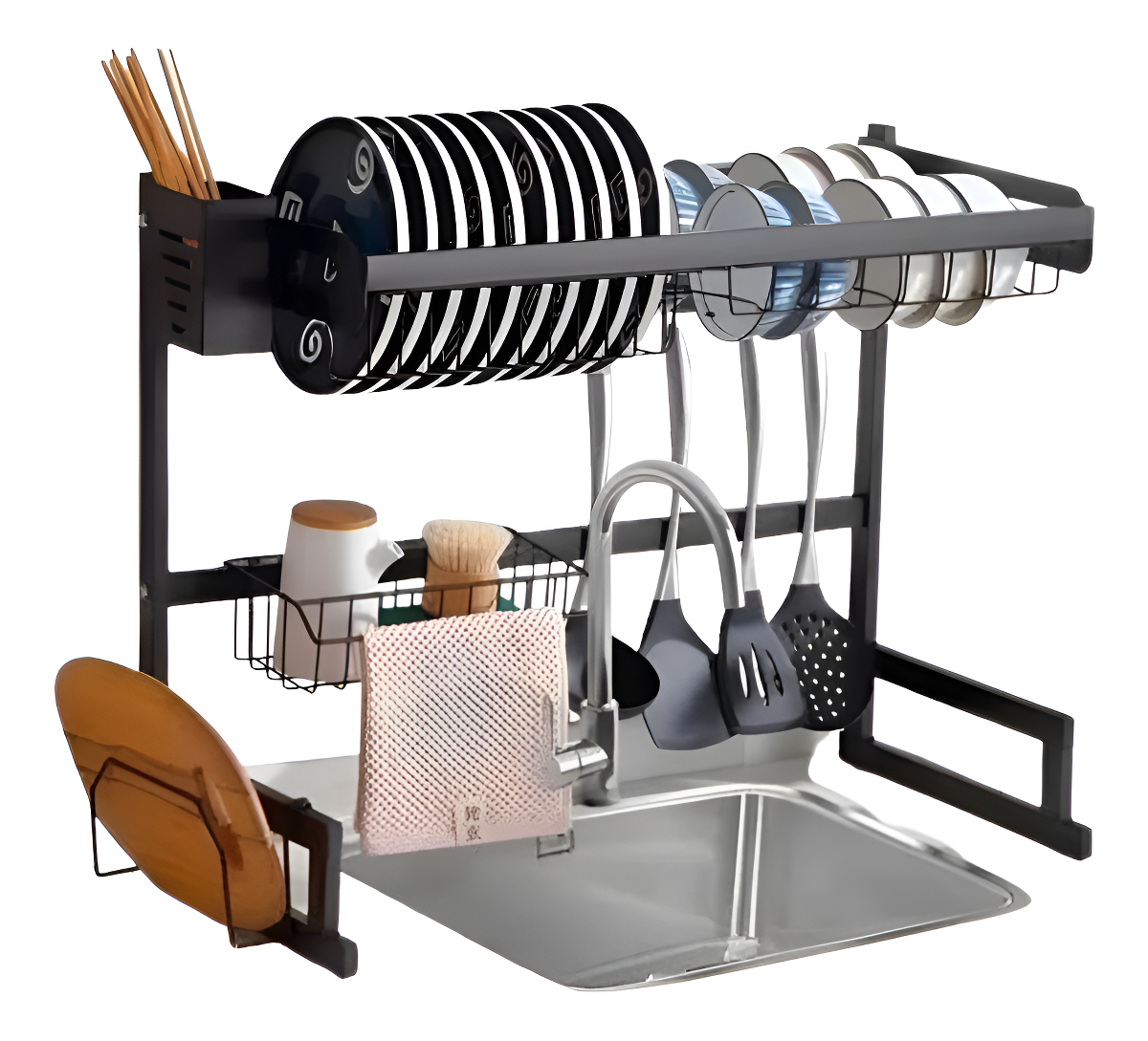 Escurridor De Loza Organizador Platos Utensilios Cocina 65cm Color Negro