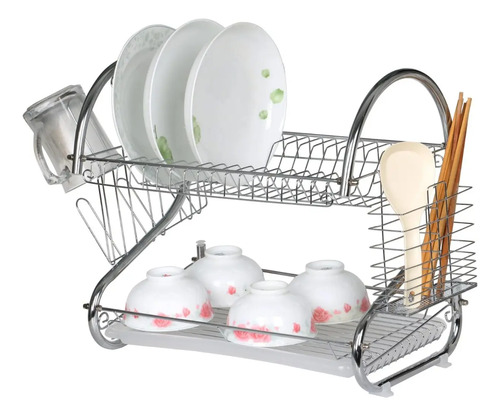 ¡Optimiza tu cocina con nuestro escurridor de vajilla de 2 niveles! Mantén tu espacio ordenado y seco de manera eficiente mientras tus platos, vasos y utensilios se secan al aire. ¡Haz que la tarea de lavar los trastes sea más fácil y organizada con este práctico escurridor!