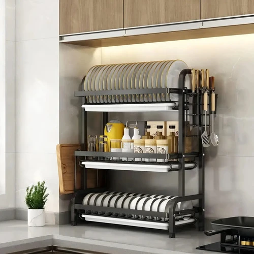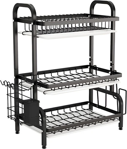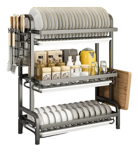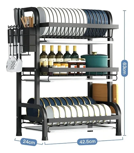 Escurridor De Platos 3 Niveles De Metal Escurre Platos Color Negro