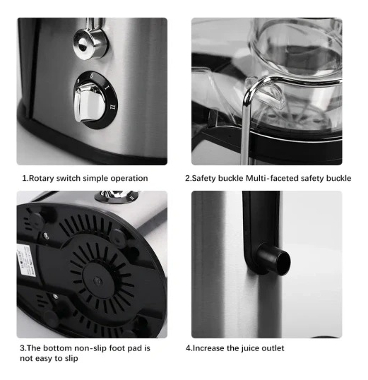 • Red de cuchillas de acero inoxidable de alta calidad, resistente y duradera, que mejora eficazmente el rendimiento del jugo.