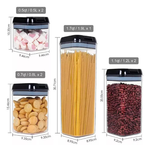 Cada tamaño de contenedor de almacenamiento de alimentos es perfecto para almacenar alimentos básicos comunes del hogar, incluidos cereales, harina, azúcar, pasta, arroz, café, nueces, refrigerios y más.