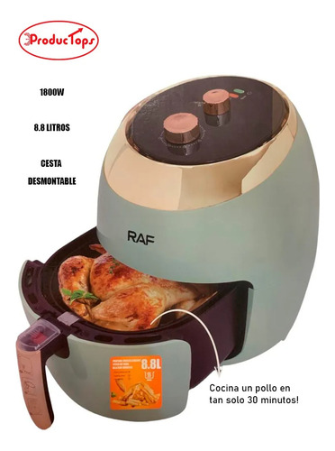 Freidora de aire sin aceite RAF R.5296G 8.8L verde pastel – Cocina saludable y eficiente para toda la familia