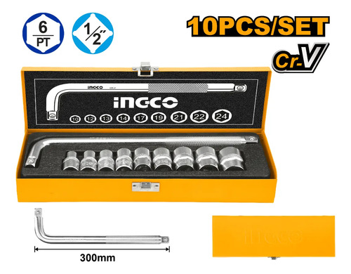 JUEGO DE DADOS 10PCS 1/2″ CON MANGO DE FUERZA