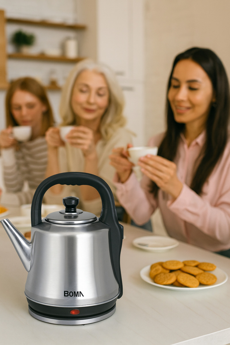 Jarra tetera electrica Boma Ace Inox 1.2L 1500W – Diseño elegante, rapido calentamiento y corte automatico de seguridad.