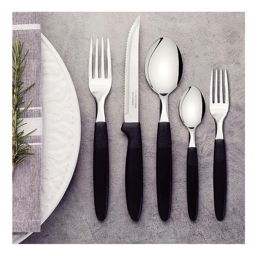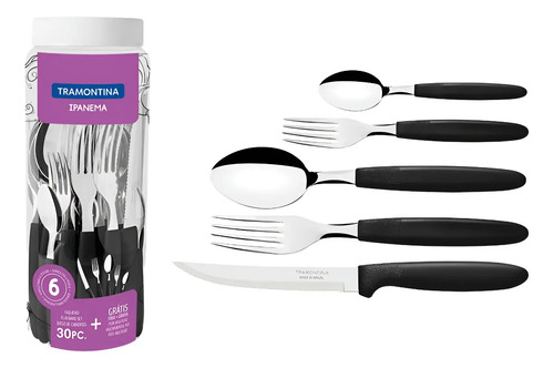 El juego de cubiertos Tramontina Ipanema Negro de 30 piezas es la combinación perfecta de estilo y funcionalidad para tu mesa. Diseñado con materiales de alta calidad, ofrece durabilidad y resistencia para el uso diario. Sus cuchillas de acero inoxidable garantizan un corte preciso, mientras que sus mangos de polipropileno brindan comodidad y firmeza en cada uso.
