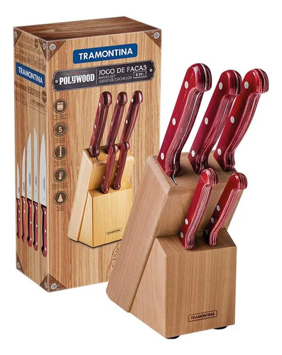 Taco de Madera 6 Piezas Polywood Rojo Tramontina 21199/783 – Elegante, funcional y resistente, ideal para equipar tu cocina con cuchillos de alto rendimiento y diseño clasico.