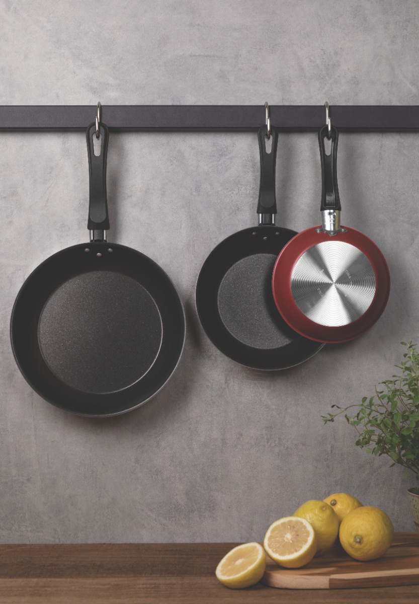 El juego de sartenes Caribe Red de 3 piezas de Tramontina es ideal para quienes buscan calidad y practicidad en la cocina. Con el revestimiento antiadherente Starflon Max, tanto interno como externo, facilita la limpieza al evitar que los alimentos se peguen. El cuerpo de las piezas está fabricado en aluminio, con un grosor que proporciona una cocción uniforme y rápida.