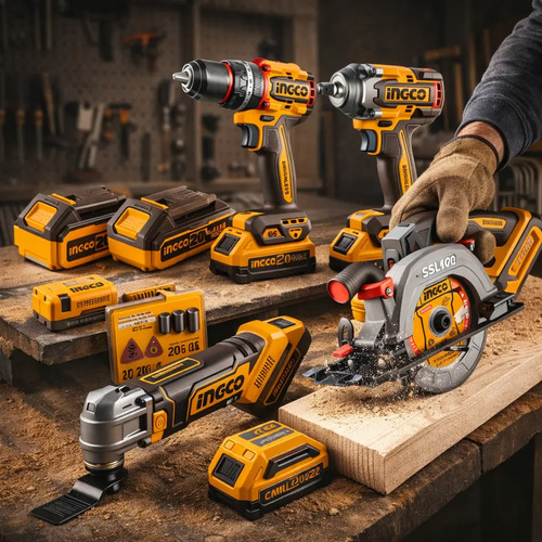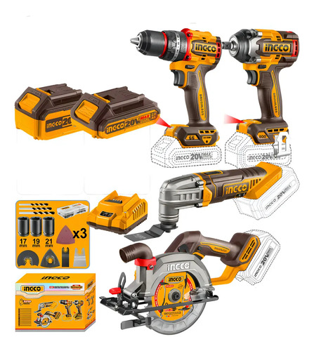 Kit Herramientas Ingco 20v Sin Carbones, 2 Baterías