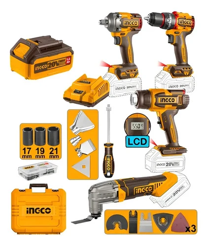 Kit Set Combo Llave Impacto Taladro Multifuncion Ingco 20v