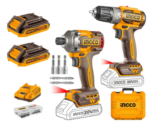 Kit Taladro 52nm + Atornillador Impacto 285nm Inalámbricos Color Naranja Claro Frecuencia 50hz/60hz