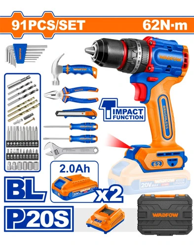 Set de herramientas 91 piezas con taladro atornillador percutor 20V – Completo, potente y listo para todo tipo de tareas