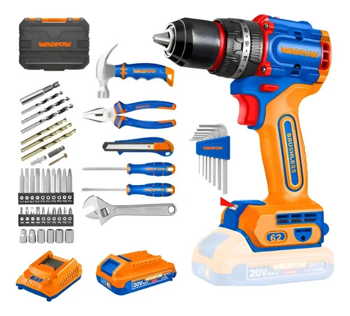 Kit Taladro C/percutor C/2 Bat 2ah + 91 Herramientas Wadfow