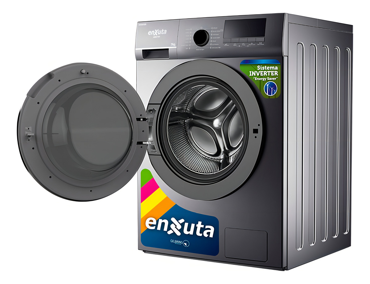 El **Lavarropas Enxuta Lenx770T** de carga frontal es una opción ideal para quienes buscan un equipo eficiente y de alto rendimiento en el lavado de ropa. Con una capacidad de 7 kg, es perfecto para hogares de tamaño mediano, ofreciendo un rendimiento excelente sin desperdiciar energía ni agua. Su **tecnología Inverter** garantiza un funcionamiento más silencioso y eficiente, reduciendo el consumo energético y prolongando la vida útil del aparato. Con una amplia gama de programas de lavado, este lavarropas se adapta a diferentes tipos de tejidos y necesidades, brindando resultados impecables en cada ciclo. Su diseño elegante y moderno en color gris se integra perfectamente a cualquier espacio, mientras que su panel de control intuitivo facilita la selección de opciones. Compacto pero potente, el **Enxuta Lenx770T** es la elección perfecta para quienes buscan calidad, eficiencia y durabilidad en su electrodoméstico.