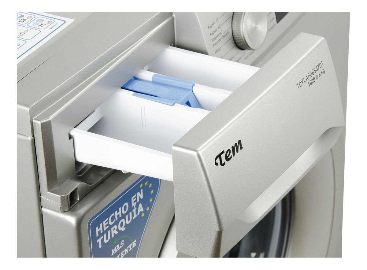 Descubre el Lavarropas TEM Mod. TOYLAF06AS, una solución ideal para tu hogar. Con una capacidad de 6 kg y una velocidad de centrifugado de 1000 RPM, este lavarropas automático garantiza un lavado eficiente y rápido. Su diseño de carga frontal en elegante color gris se adapta perfectamente a cualquier espacio. Equipado con una pantalla digital, ofrece 15 programas específicos para distintos tipos de prendas, asegurando el cuidado adecuado de tu ropa. Además, cuenta con la opción de exclusión de centrifugado y selección de temperatura, brindándote mayor control sobre cada ciclo. Su bajo nivel de ruido lo convierte en una opción silenciosa, y la programación para retraso de encendido de hasta 12 horas te permite planificar tus lavados con comodidad. Con alarma de finalización, nunca más te olvidarás de tu colada. ¡Haz de tu rutina de lavado una experiencia más sencilla y eficiente con el Lavarropas TEM!