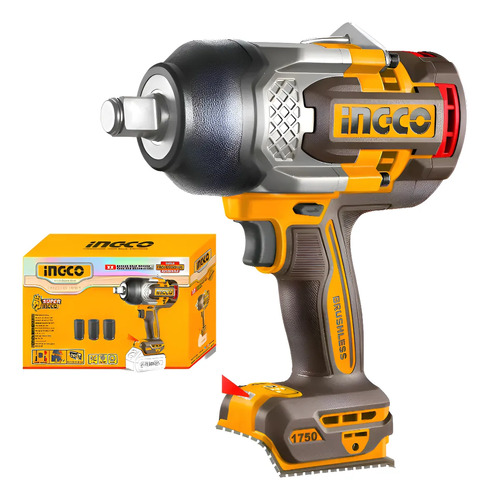 Llave De Impacto 1750nm 20v + 3 Dados Sin Bat Ingco 50/60hz