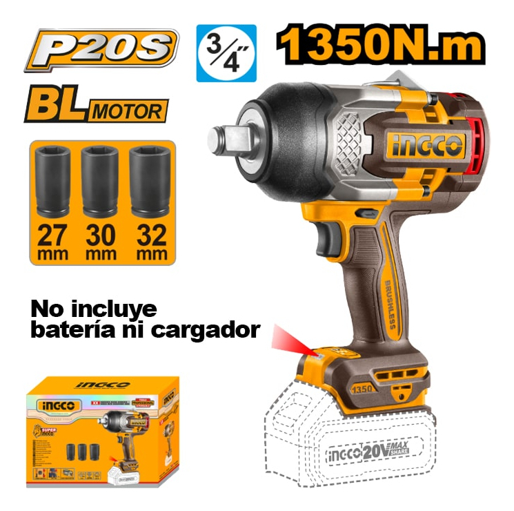 La llave de impacto inalámbrica Ingco CIWLI201351 de 20V es una herramienta potente y versátil, diseñada para satisfacer las demandas de trabajos industriales y automotrices. Equipada con un motor sin escobillas, ofrece un torque máximo de 1350 Nm y un torque de ruptura de hasta 1900 Nm, lo que la hace ideal para aflojar pernos y tuercas de gran tamaño con facilidad. Su encastre de 3/4″ y las tres velocidades ajustables permiten adaptarse a diversas aplicaciones, desde mantenimiento de maquinaria pesada hasta tareas de construcción.